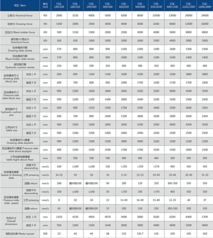 Y28系列雙動(dòng)薄板拉伸液壓機