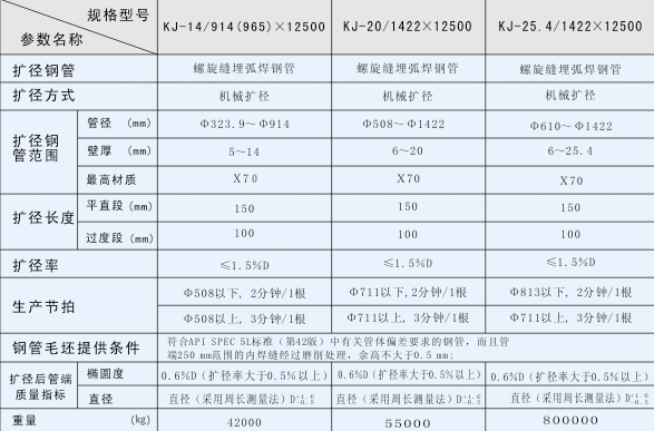 產(chǎn)品功能  用于大口徑螺旋埋弧焊管管端的擴徑,以提高鋼管管端的直徑精度、圓度和改善管端材料的機械性能。